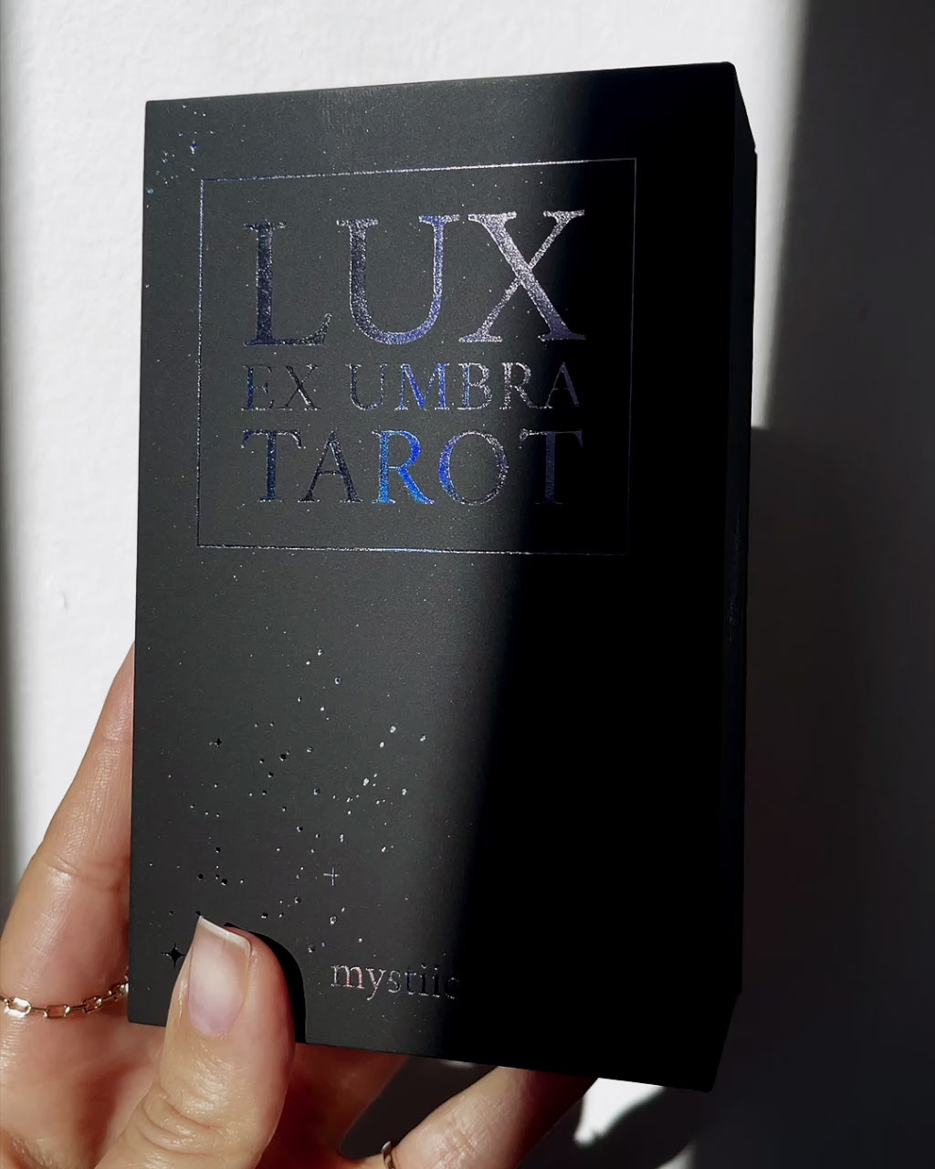 Freely inspired by astrology and symbolism, the Lux Ex Umbra Tarot is a narrative tool designed to encourage self-reflection. This 78-card deck, rooted in the tradition of the Tarot de Marseille, was created using a mixed-media approach, combining digital painting and photography.